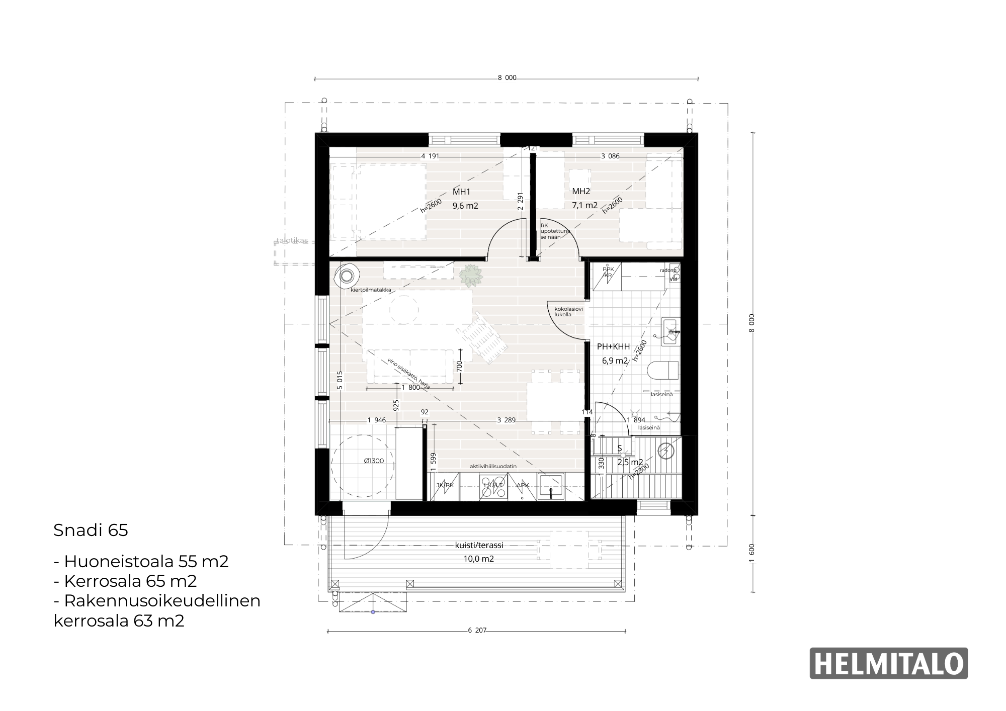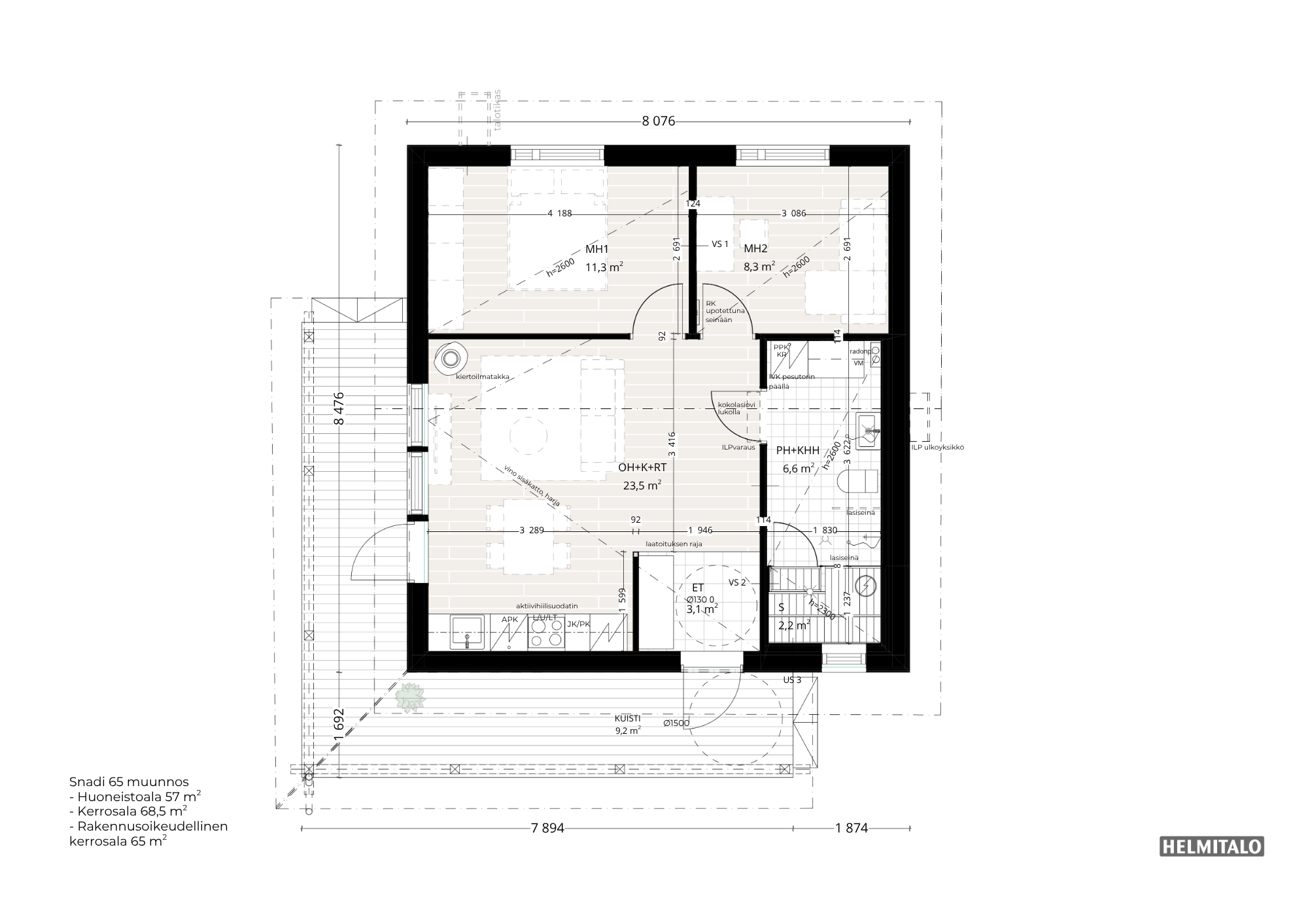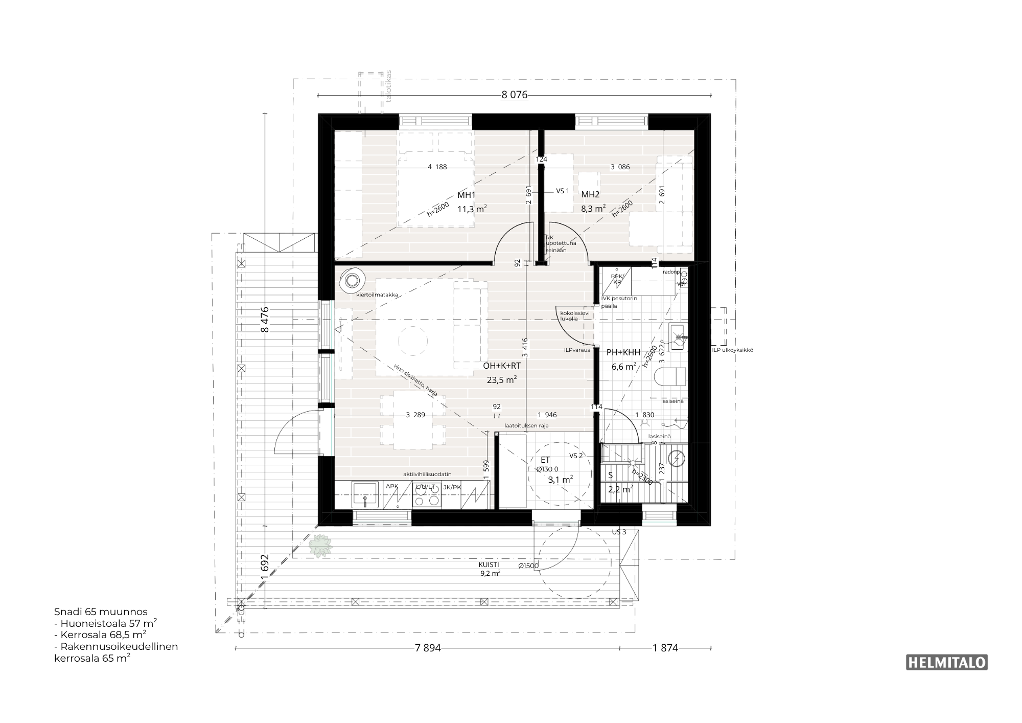 - Kerrosala: 65 m2
